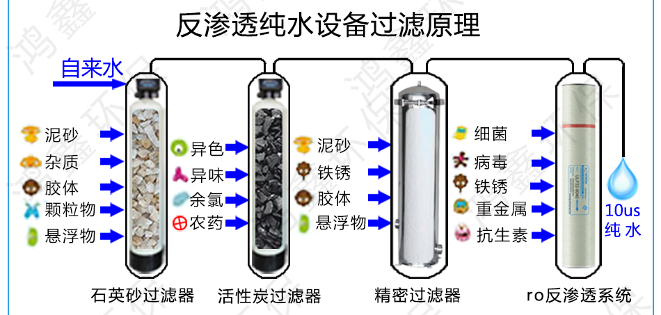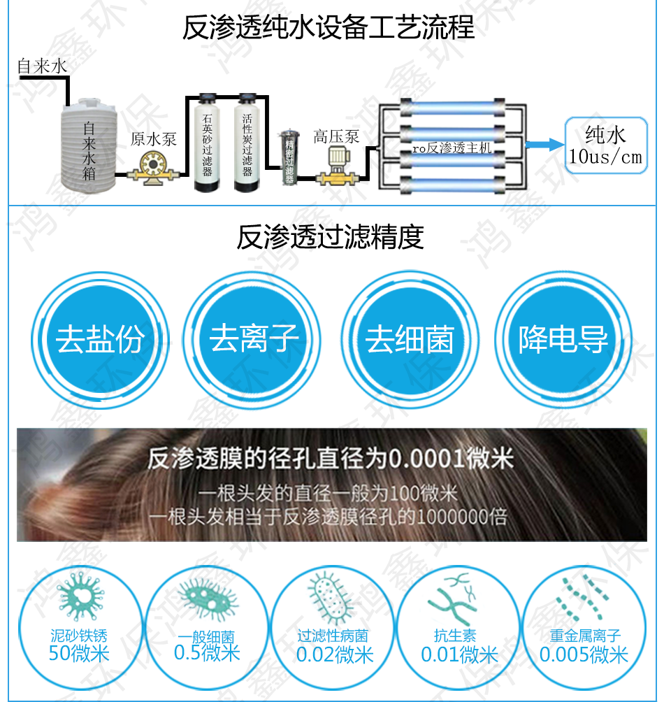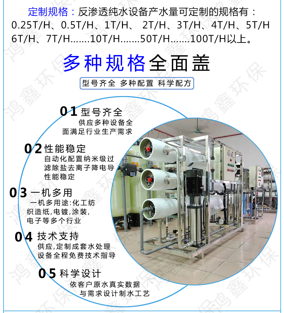 鴻鑫環(huán)保專業(yè)定制:市政生活用水處理設(shè)備、直飲純凈水設(shè)備超濾水處理設(shè)備、ro反滲透純水設(shè)備,離子交換純水設(shè)備、EDI超純水設(shè)備、軟化水處理設(shè)備、RO濃水回收設(shè)備、中水回用設(shè)備。
