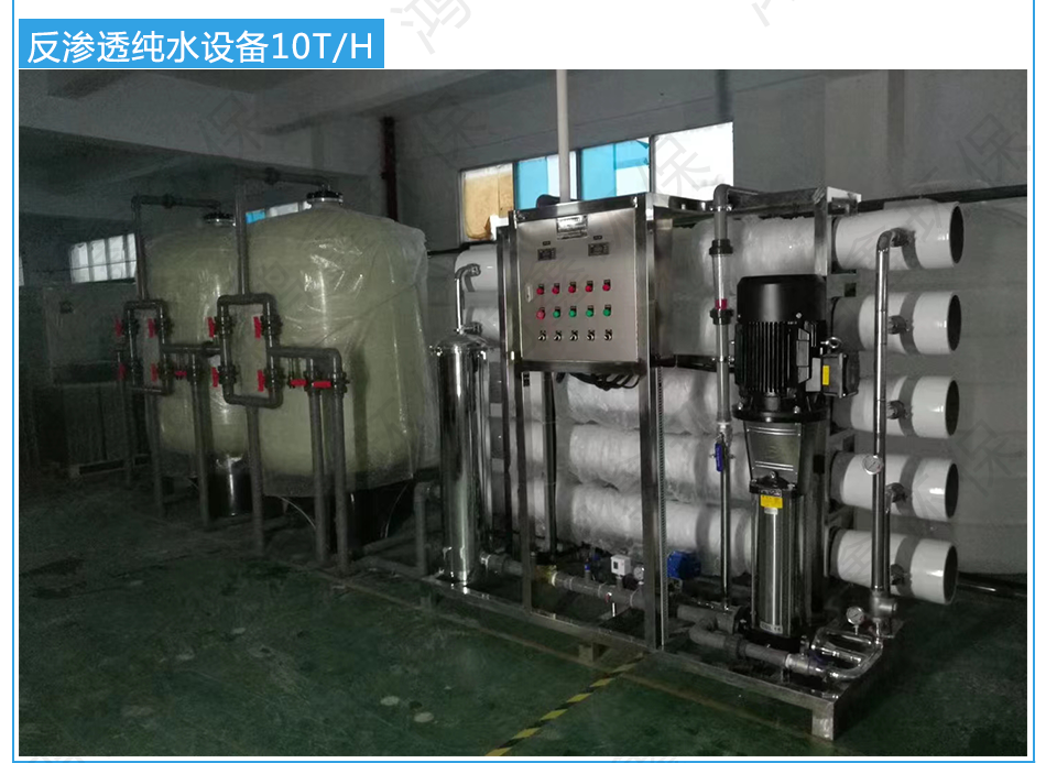反滲透純水設(shè)備是由原水箱+原水泵+石英砂過(guò)濾器+活性炭過(guò)濾器+RO反滲透主機(jī)過(guò)濾系統(tǒng)+純水箱這些裝置組成,也就是水只經(jīng)過(guò)RO過(guò)濾系統(tǒng)過(guò)濾一次,除鹽率一般為98-99%,出水的電導(dǎo)率在5us/cm-10us/cm之間。