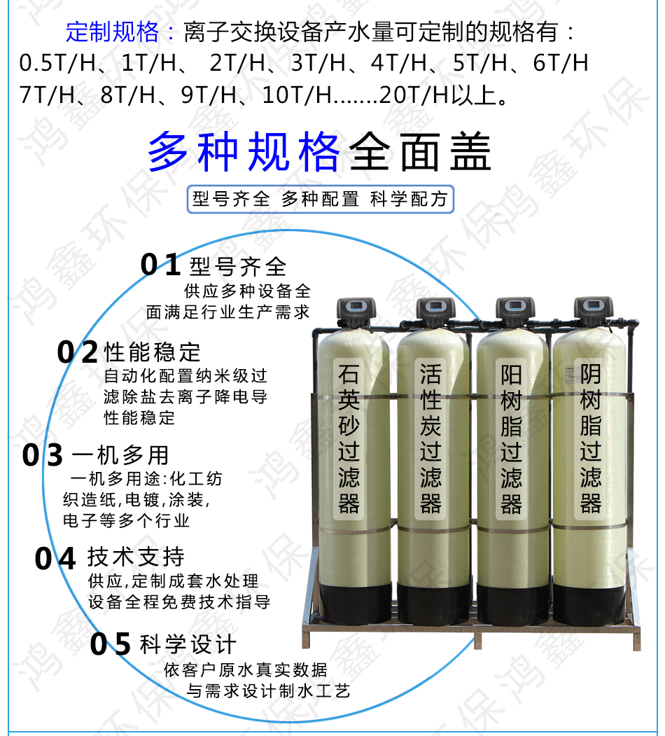 鴻鑫環(huán)保專業(yè)定制:市政生活用水處理設備、直飲純凈水設備超濾水處理設備、ro反滲透純水設備,離子交換純水設備、EDI超純水設備、軟化水處理設備、RO濃水回收設備、中水回用設備。