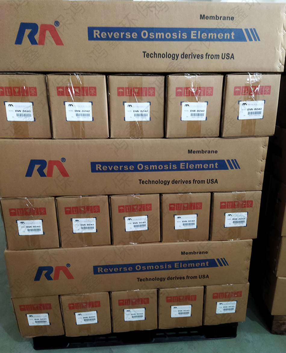 反滲透RO膜是一張半滲透性的薄膜,內(nèi)分含鹽量少的一邊的水分會透過膜滲到含鹽量高的水中,而所含的鹽分并不滲透,這樣,逐漸把兩邊的含鹽濃度融合到均等為止,這一過程稱為滲透。然而,要完成這一過程需要很長時間。但如果在含鹽量高的水側(cè),試加一個壓力,其結(jié)果也可以使上述滲透停止,這時的壓力稱為滲透壓力。如果壓力再加大,可以使方向相反方向滲透,而鹽分剩下。因此,反滲透除鹽原理,就是在有鹽分的水中(如原水),施以比自然滲透壓力更大的壓力,使?jié)B透向相反方向進行,把原水中的水分子壓力到膜的另一邊,變成潔凈的水,從而達到除去水中雜質(zhì)、鹽分的目的。