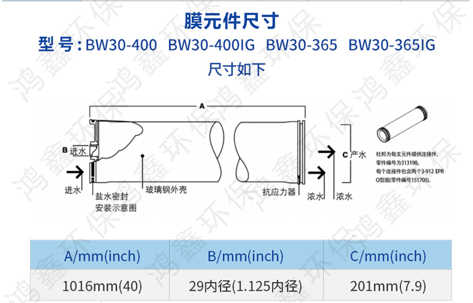 陶氏8040反滲透RO膜是通過(guò)高壓泵對(duì)過(guò)原水施加大于滲透壓的壓力,利用 RO 膜的分離技術(shù),有效分離出原水中大于 200 的幾乎包括所有顆粒、膠體、有機(jī)雜質(zhì)、微生物等有害物及99%的溶解鹽,達(dá)到脫鹽純