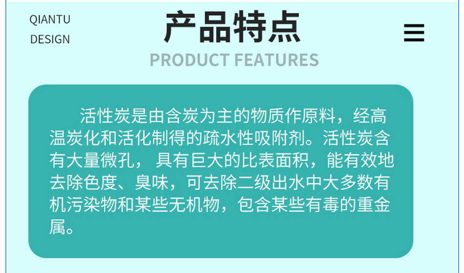 水處理活性炭用在水處理行業(yè)中可去除水中余氯、膠體、有機(jī)物、重金屬(如汞、銀、鎘、鉻、鉛、鎳等等)、放射性物質(zhì)等。