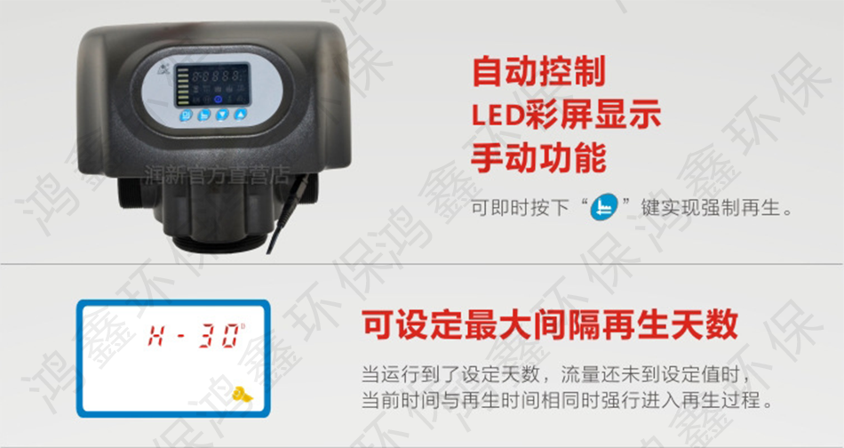 潤新水處理控制閥性能:潤新閥的耐雜質(zhì)能力更強,反洗流量大,顯示方式有LED及LCD兩種,再生方式有順流再生、逆流再生供選擇。潤新閥的出廠產(chǎn)品100%進行0.1MPa、0.6MPa氣壓及水壓測試且通過美國NSF認證,具有嚴格的可靠性。