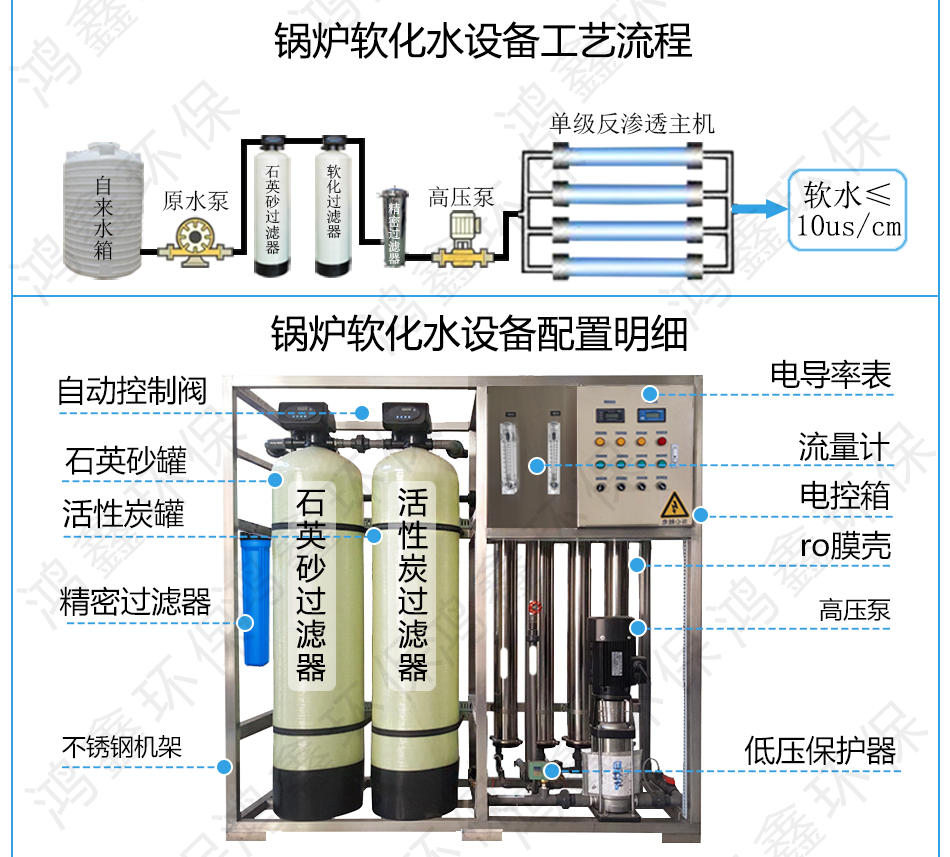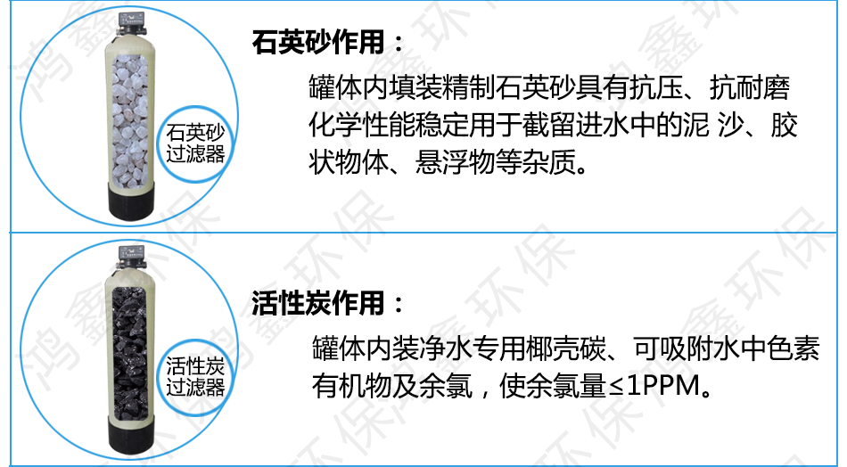2:砂過濾+炭過濾+ro反滲透系統(tǒng)=軟化水