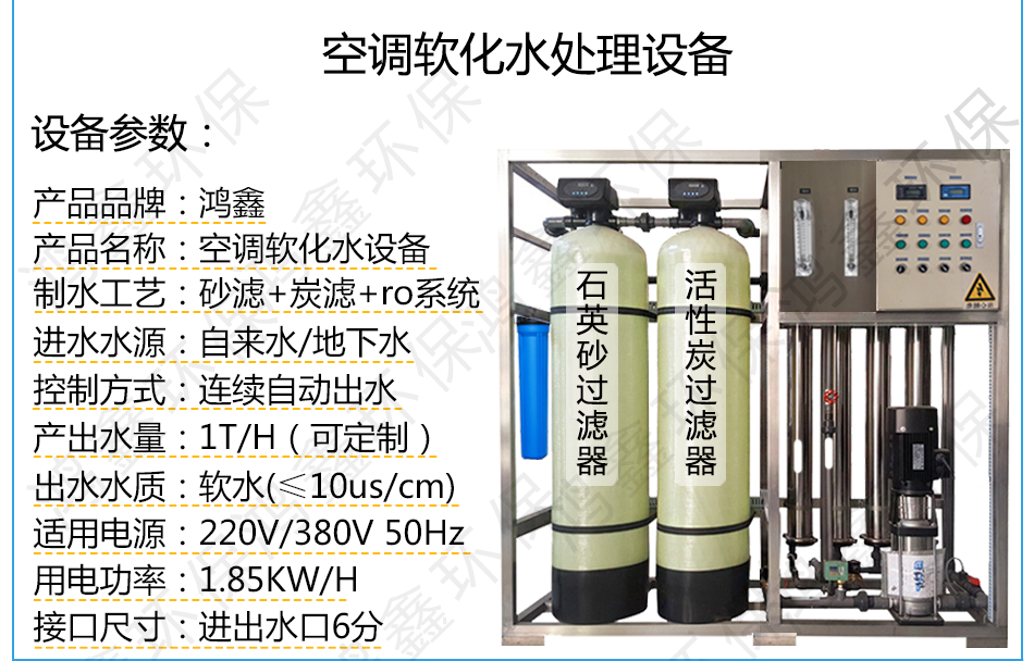 空調軟化水處理設備是專門去除水中的鈣鎂離子,降低原水的硬度,去除有效率高達98.5%以上。