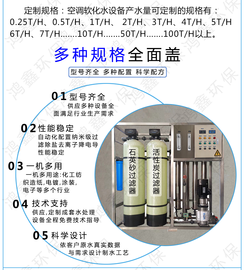鴻鑫環(huán)保專業(yè)定制:市政生活用水處理設備、直飲純凈水設備超濾水處理設備、ro反滲透純水設備,離子交換純水設備、EDI超純水設備、軟化水處理設備、RO濃水回收設備、中水回用設備。