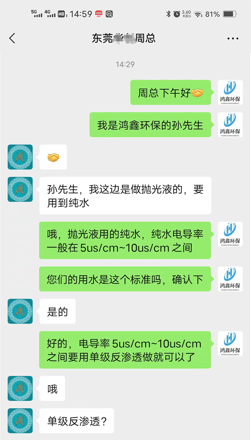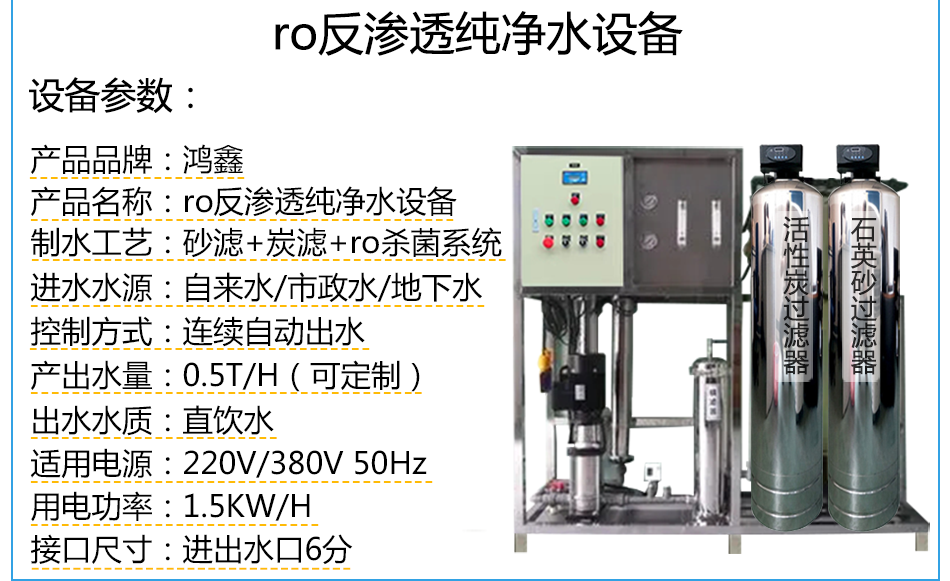 鴻鑫環(huán)保設(shè)備15年專注于水處理凈化工藝的設(shè)計、生產(chǎn)銷售安裝、設(shè)備維護、設(shè)備出租、技術(shù)服務(wù)為一體的一條龍服務(wù)企業(yè),所有的設(shè)備可依據(jù)客戶需求來定制,定制的設(shè)備類型有:市政生活用水處理設(shè)備、直飲純凈水設(shè)備、超濾處理設(shè)備、ro反滲透純水設(shè)備,離子交換純水設(shè)備、EDI超純水設(shè)備、軟化水處理設(shè)備、RO濃水回收設(shè)備、中水回用設(shè)備。