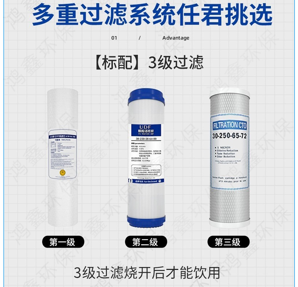 4:四級濾芯采用RO反滲透膜,過濾精度高達(dá)0.0001微米作為核心凈化工藝,能有效去除水中細(xì)菌、病毒、重金屬、有機(jī)化合物等。
