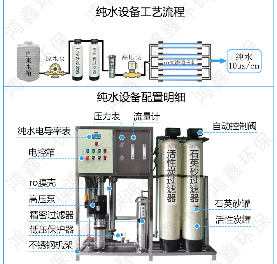 以上工藝和配置主要區(qū)別在于純水設(shè)備沒有配紫外線殺菌消毒,石英砂罐,活性炭罐是玻璃纖維材質(zhì),適用于工業(yè)用水配置,所以不建議用來喝。