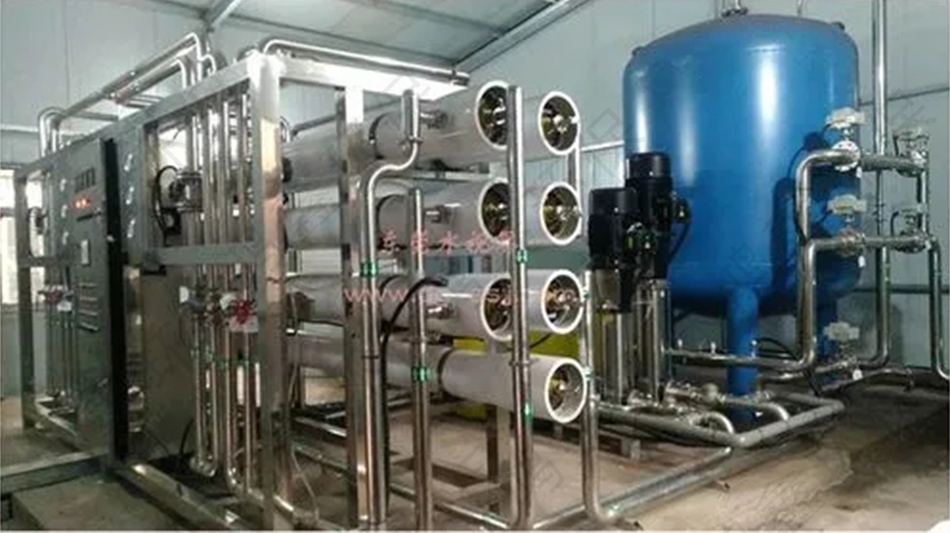 其中預(yù)處理的由石英沙過濾裝置,活性碳過濾裝置,精密過濾裝置組成,主要目的是去除原水中含有的泥沙、鐵銹、膠體物質(zhì)、懸浮物,色素、異味、生化有機物,降低水的余氯值及農(nóng)藥污染等有害的物質(zhì)。如果原水中鈣鎂離子含量較高時,還需增加軟水裝置,主要目的在于保護后級的反滲透膜不受大顆粒物質(zhì)的破壞,從而延長反透膜的使用壽命。