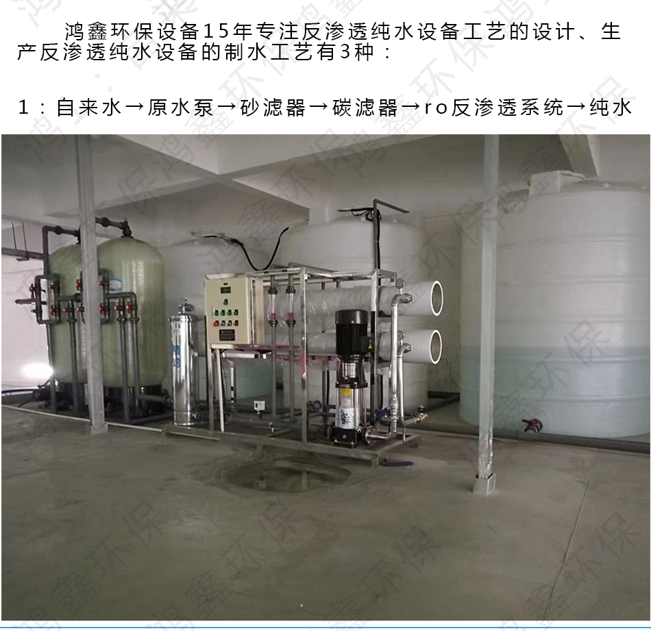 鴻鑫環(huán)保設(shè)備15年專注于水處理凈化工藝的設(shè)計、生產(chǎn)銷售安裝、設(shè)備維護(hù)、設(shè)備出租、技術(shù)服務(wù)為一體的一站式反滲透純水設(shè)備廠家,所有的設(shè)備可依據(jù)客戶需求來定制,定制的設(shè)備類型有:市政生活用水處理設(shè)備、直飲純凈水設(shè)備、超濾處理設(shè)備、ro反滲透純水設(shè)備,離子交換純水設(shè)備、EDI超純水設(shè)備、軟化水處理設(shè)備、RO濃水回收設(shè)備、中水回用設(shè)備。